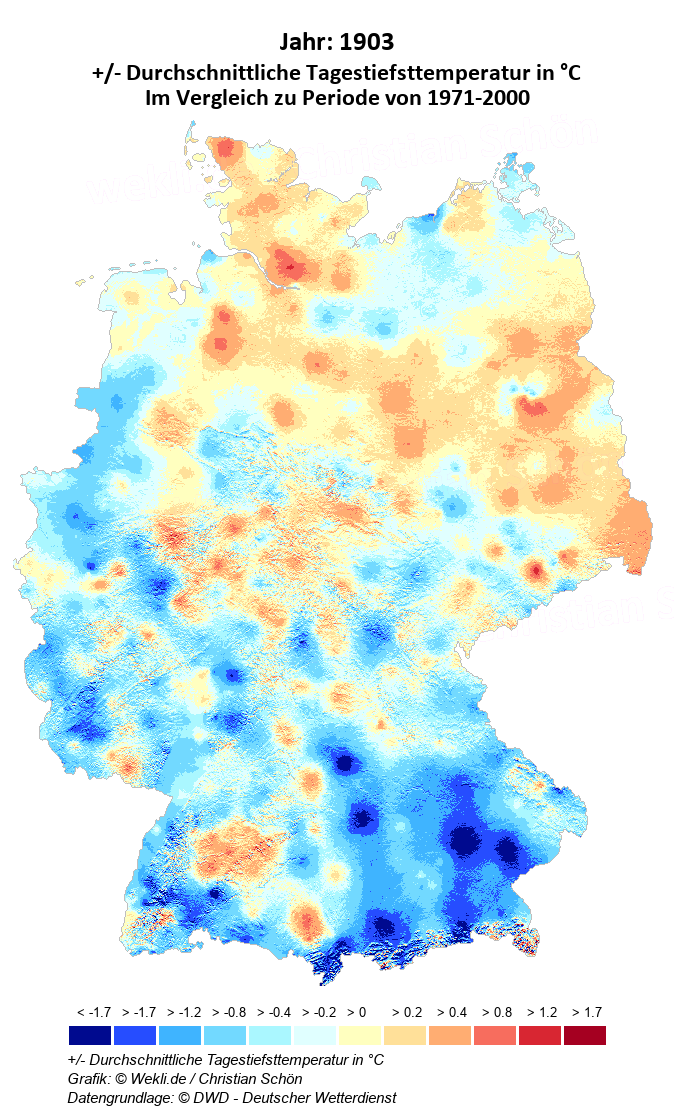 1903 - +/- Durchschnittliche Tagestiefsttemperatur in °C