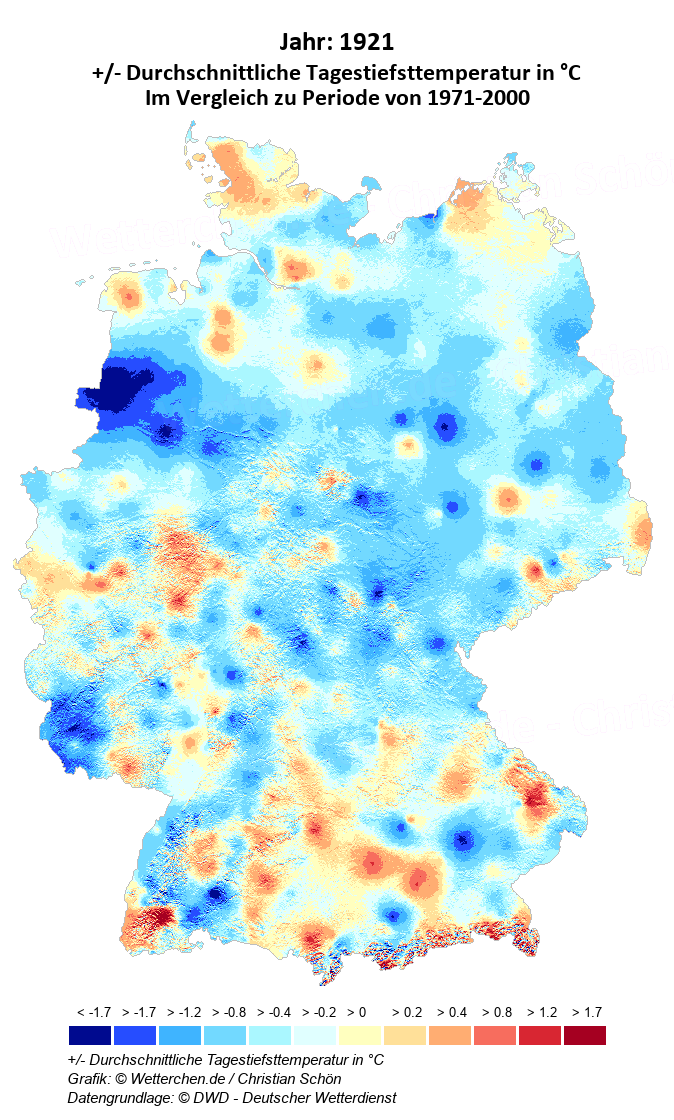 1921 - +/- Durchschnittliche Tagestiefsttemperatur in °C