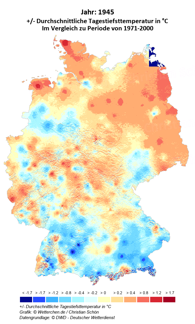 1945 - +/- Durchschnittliche Tagestiefsttemperatur in °C