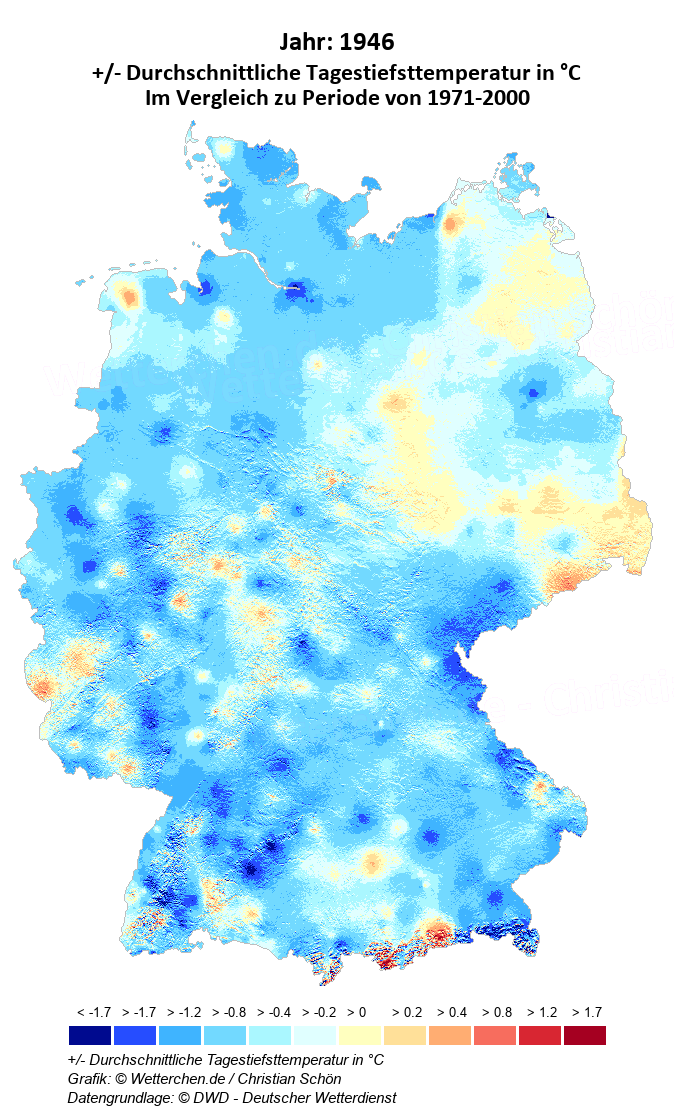 1946 - +/- Durchschnittliche Tagestiefsttemperatur in °C