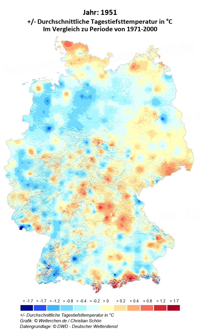 1951 - +/- Durchschnittliche Tagestiefsttemperatur in °C
