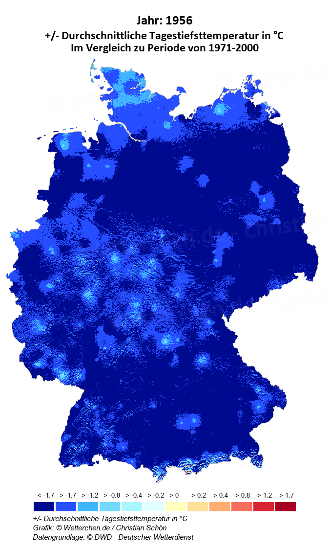 1956 - +/- Durchschnittliche Tagestiefsttemperatur in °C