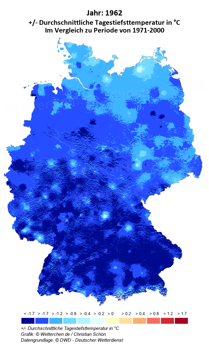 1962 - +/- Durchschnittliche Tagestiefsttemperatur in °C