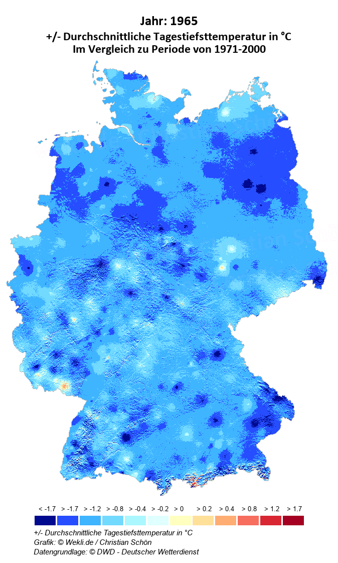 1965 - +/- Durchschnittliche Tagestiefsttemperatur in °C