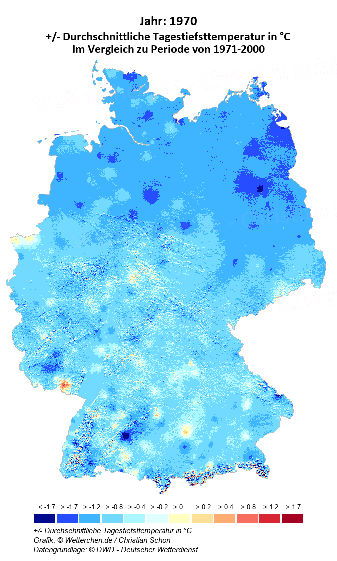 1970 - +/- Durchschnittliche Tagestiefsttemperatur in °C
