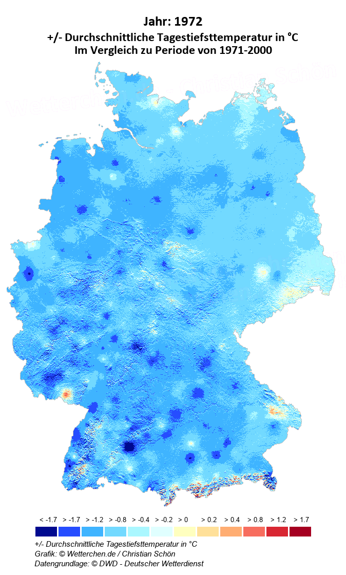 1972 - +/- Durchschnittliche Tagestiefsttemperatur in °C