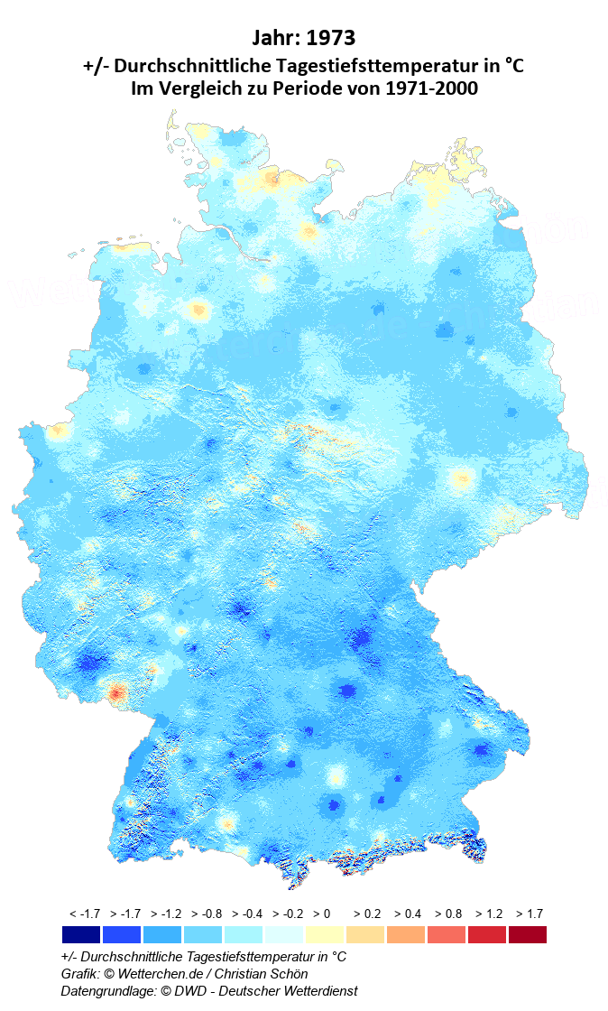 1973 - +/- Durchschnittliche Tagestiefsttemperatur in °C