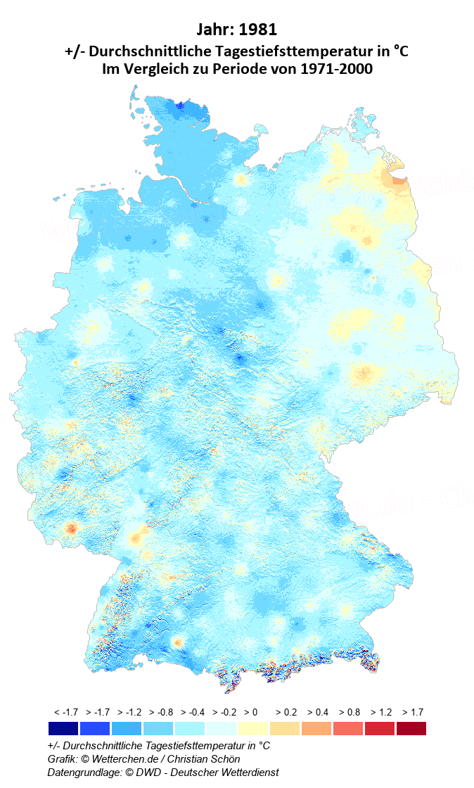 1981 - +/- Durchschnittliche Tagestiefsttemperatur in °C