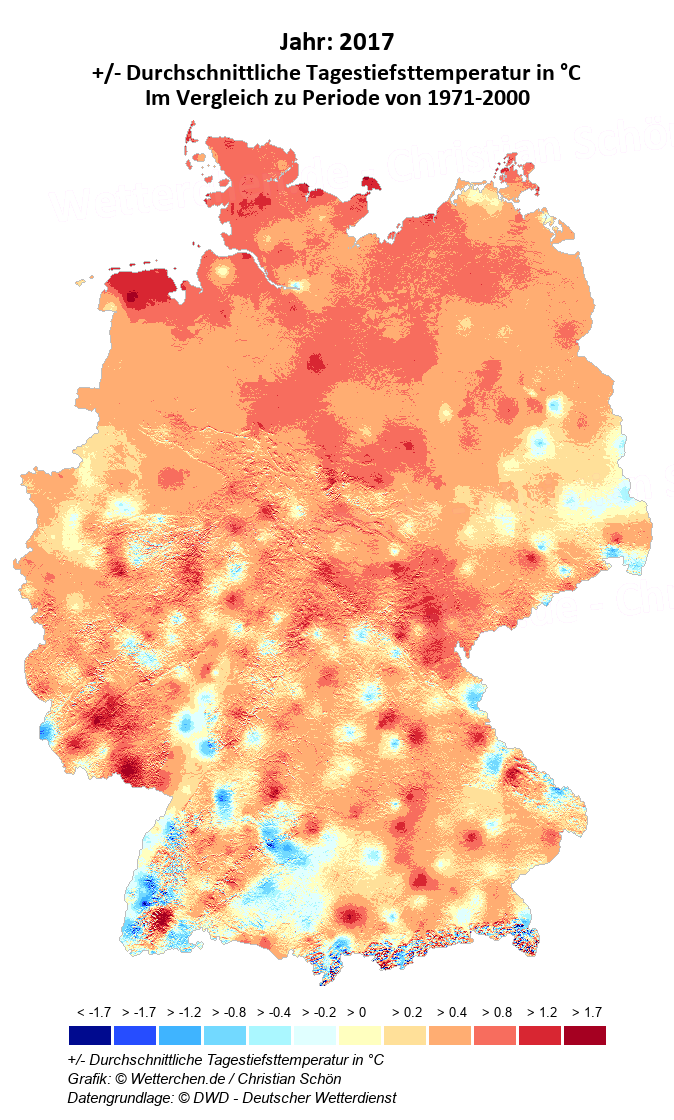 2017 - +/- Durchschnittliche Tagestiefsttemperatur in °C